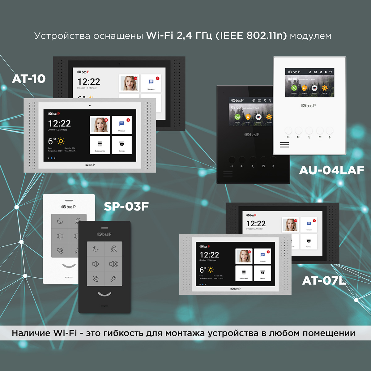 Абонентские устройства SP-03F, AU-04LAF, AT-07L, AT-10 оснащены Wi-Fi 2,4 ГГц (IEEE 802.11n) модулем